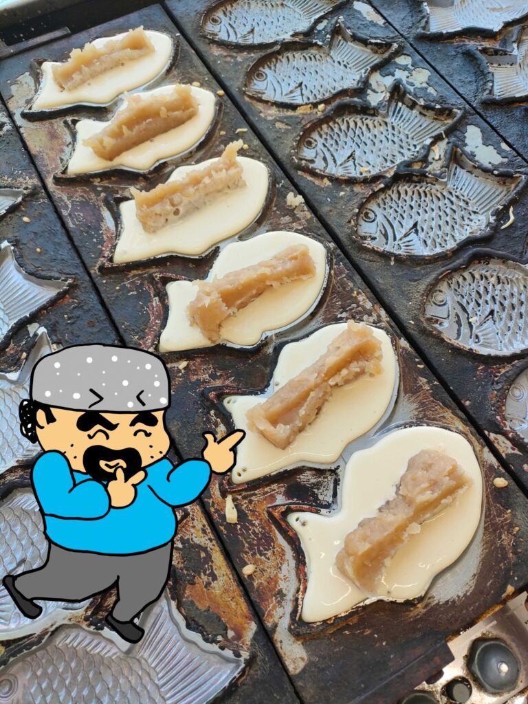 昔のお店でたい焼きを焼いていると、